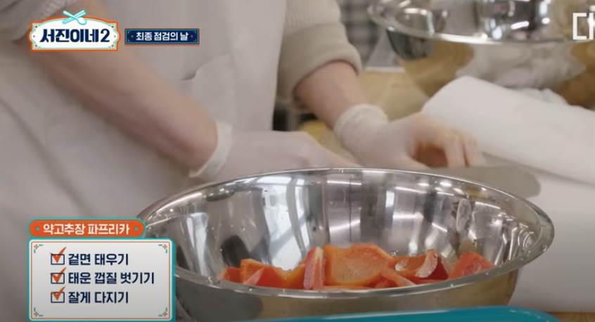 - ์๊ฐ์ด ์์๊ฒ ์์ฃผ, ์๊ธ์น, ํ๊ณ ๋ฒ์ฏ, ๋น๊ทผ, ์ ํธ๋ฐ ์์ผ๋ก ์ผ๋ ฌ๋ก ๋ด์ ์ฌ๋ ค์ฃผ๋ฉด ๋ ์ข์ต๋๋ค.