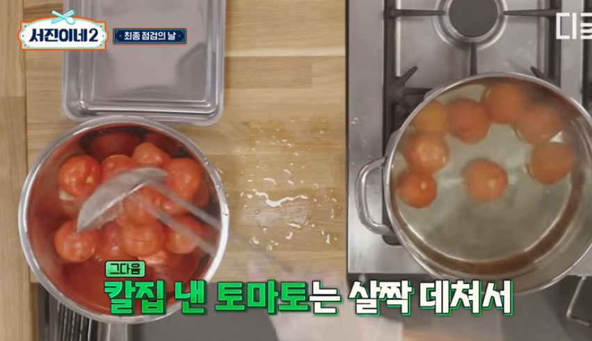- ๋ฌผ์ด ๋์ผ๋ฉด ์๊ธ์น์ ์์๋ฅผ ๋ฃ๊ณ 2๋ถ๊ฐ ์ด์ง ๋ฐ์นฉ๋๋ค.