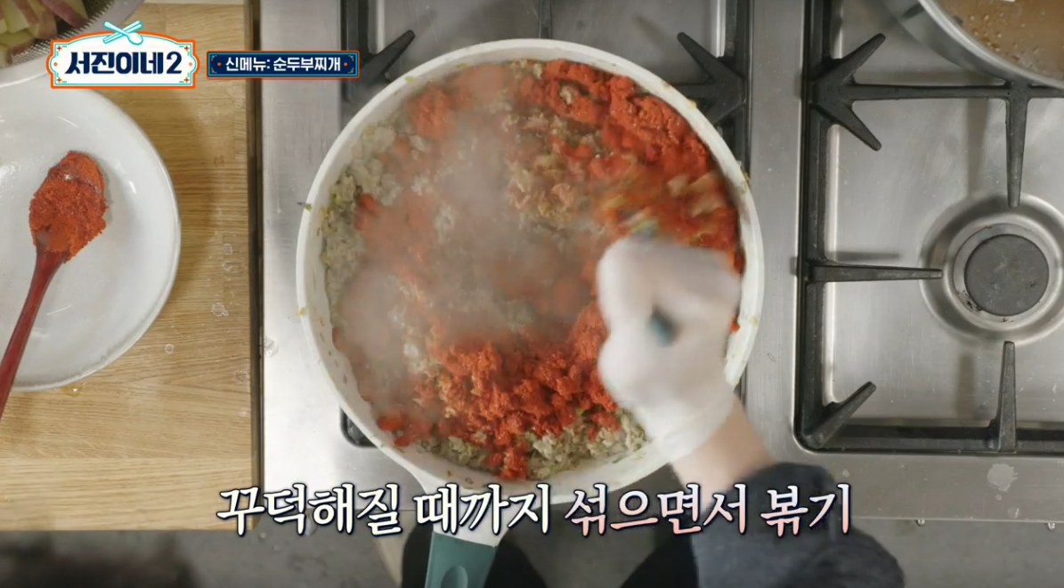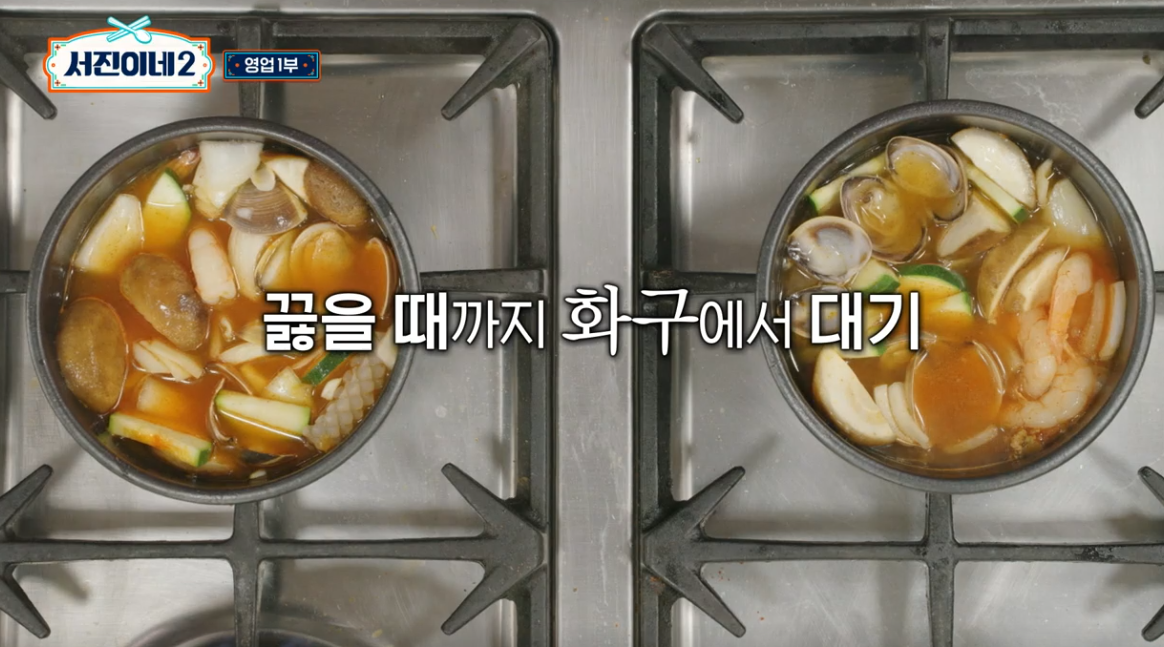 - ν΄μ°λ¬Όμ΄ μ΅μ΄κ° λ μλλΆλ₯Ό λ£κ³ , λͺ¨λ μ¬λ£κ° μ μ΅μλκΉμ§ λμ¬μ€λλ€.