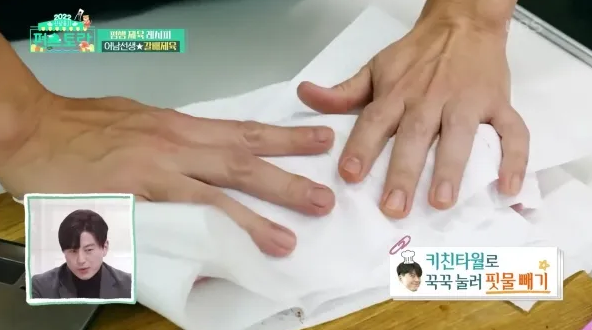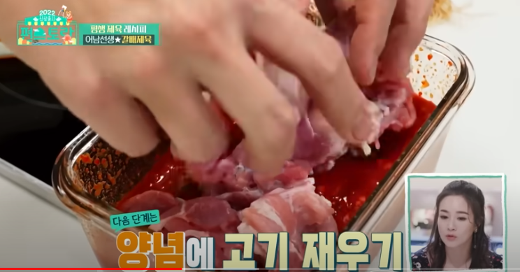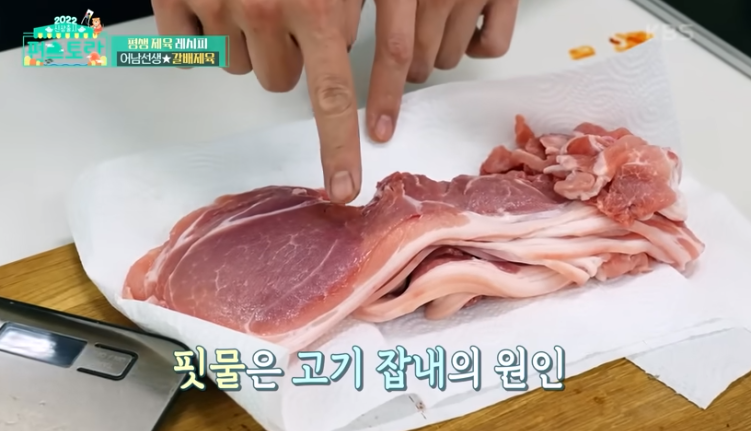 - ๋ผ์ง๊ณ ๊ธฐ๋ ํค์น ํ์๋ก ๊พน๊พน ๋๋ฌ ํ๋ฌผ์ ๋นผ์ค๋๋ค.