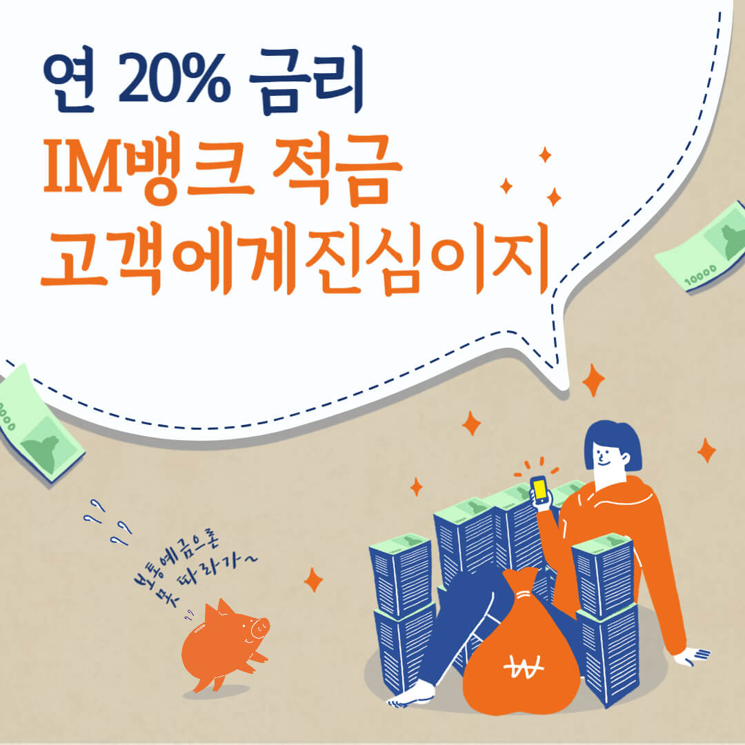 57๋ ์ ๋๊ตฌ์ํ์ด ์ต๊ทผ ์์ค์ํ์ธ IM๋ฑ ํฌ๋ก ์ ํํ๋ฉด์ ์ด๋ฅผ ๊ธฐ๋ ํ๊ธฐ ์ํด ํ๊ฒฉ์ ์ธ ์ฐ 20% ๊ณ ๊ธ๋ฆฌ์ '๊ณ ๊ฐ์๊ฒ ์ง์ฌ์ด์ง' ์ ๊ธ์ ์ถ์ํ์ต๋๋ค. ํ๊ฒฉ์ ์ธ ์ฐ 20% ๊ธ๋ฆฌ ์ ๊ธ์ด ์ํ ๋๊ธฐ ์ ์ ์๋๋ฌ ์ ์ฒญํ์ธ์.
